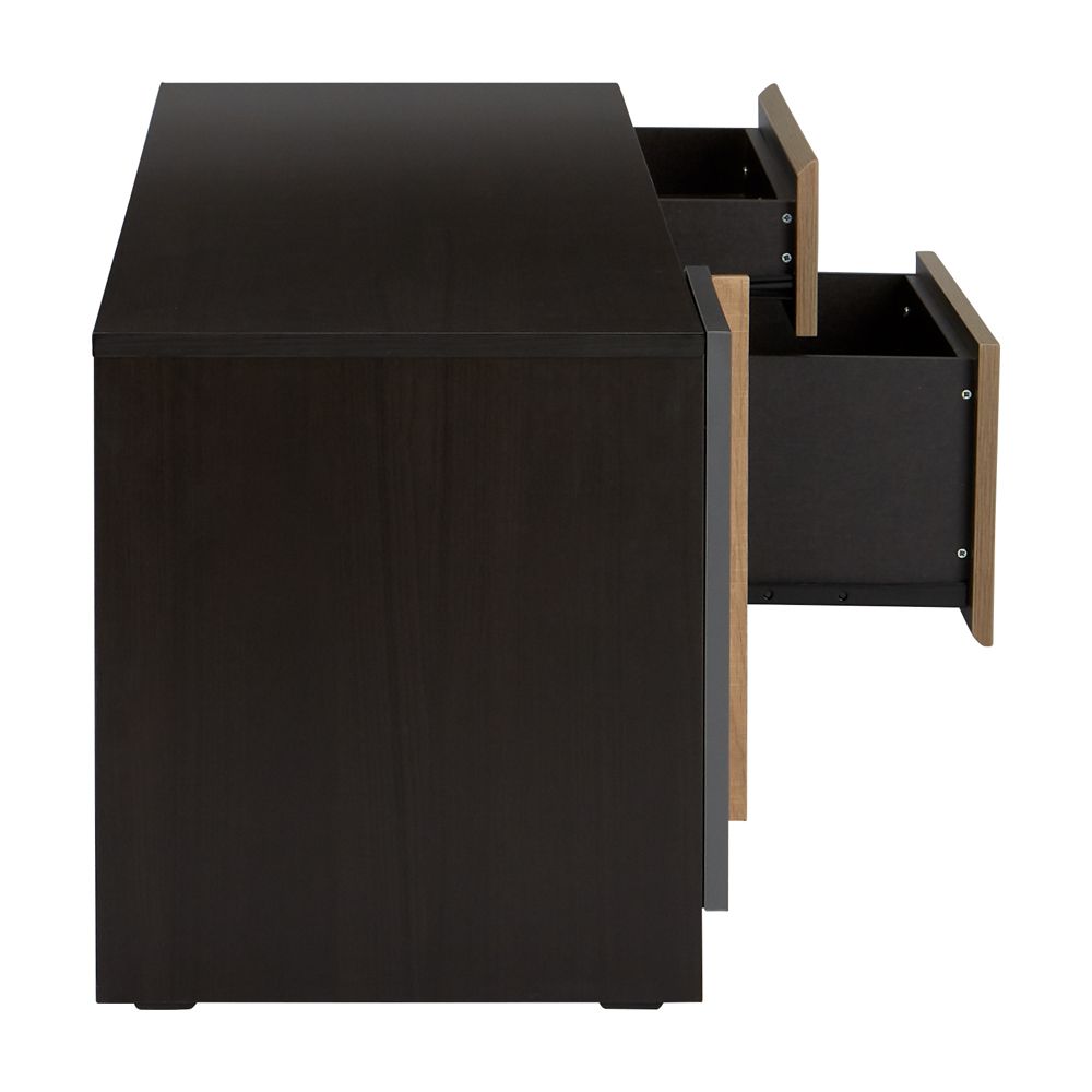 Gam màu thời thượng phối giữa đen – xám và hoạ tiết vân gỗ sồi Carmelo tự nhiên.