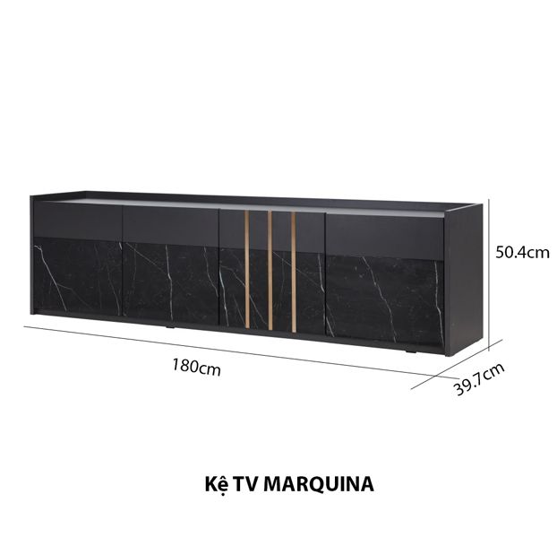 Sản phẩm được làm từ chất liệu gỗ ép công nghiệp bền chắc. Gam màu sang trọng nhờ việc phối giữa 2 màu cẩm thạch đen và vàng ánh kim, làm nổi lên hoạ tiết vân đá cẩm thạch tự nhiên.