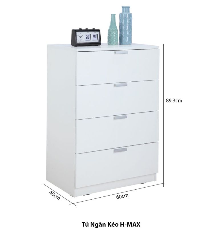 Tủ ngăn kéo H-MAX với kiểu dáng hiện đại, trang nhã đem lại nét sang trọng, ấn tượng cho không gian tổ ấm. Sản phẩm được làm từ chất liệu gỗ công nghiệp phủ melamine bền chắc. Kết hợp với các sản phẩm nội thất khác để hoàn thiện vẻ đẹp cho căn phòng đầy cảm hứng sống của gia đình bạn.