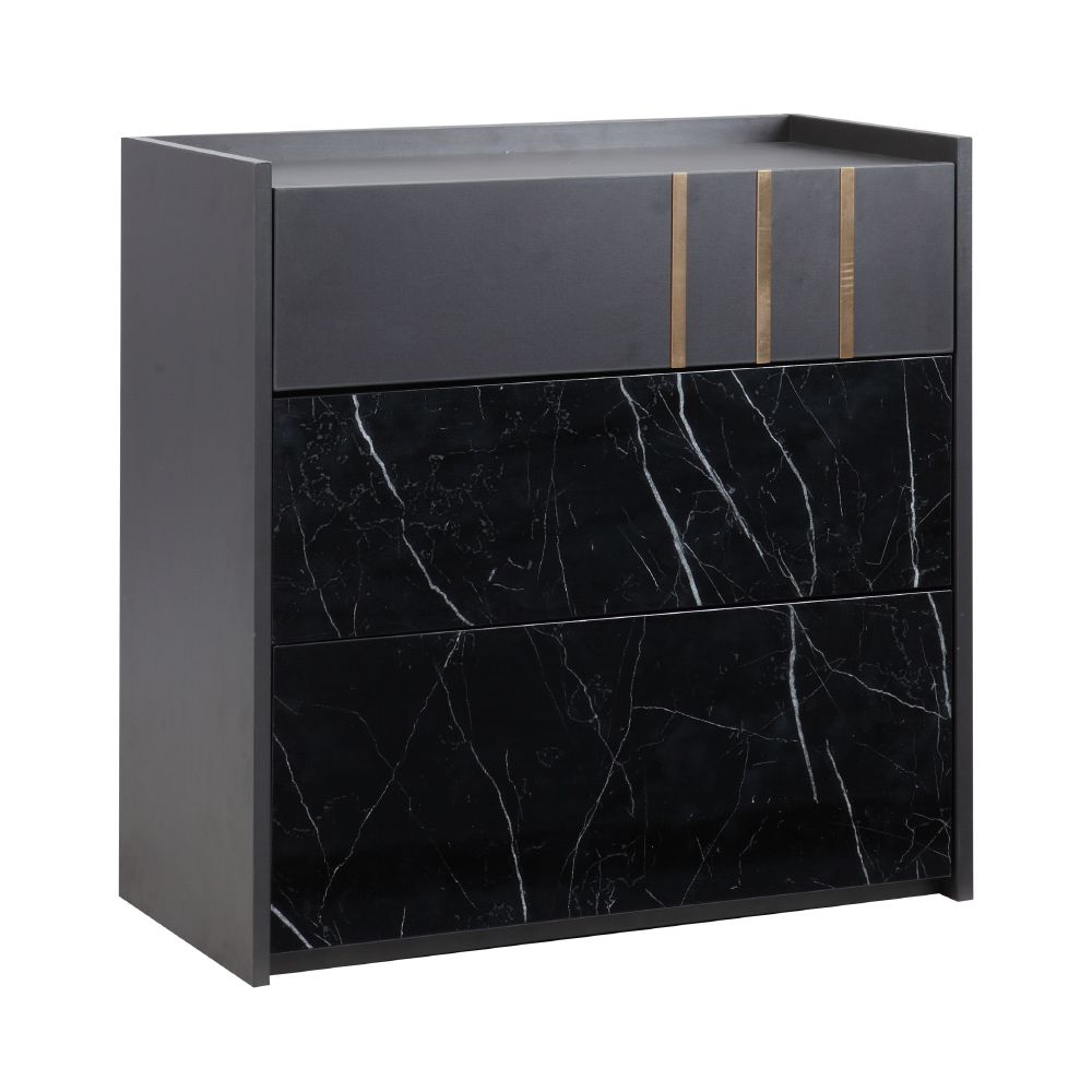 Sản phẩm được làm từ chất liệu gỗ ép công nghiệp bền chắc. Gam màu sang trọng nhờ việc phối giữa 2 màu cẩm thạch đen và vàng ánh kim, làm nổi lên hoạ tiết vân đá cẩm thạch tự nhiên.